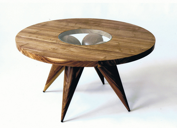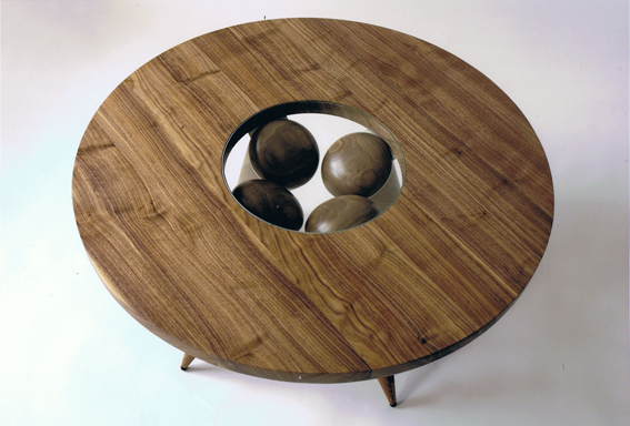 Konrad setzt Holz in Szene. Ein Stuhl wird zur Leinwnd. Ein Tisch